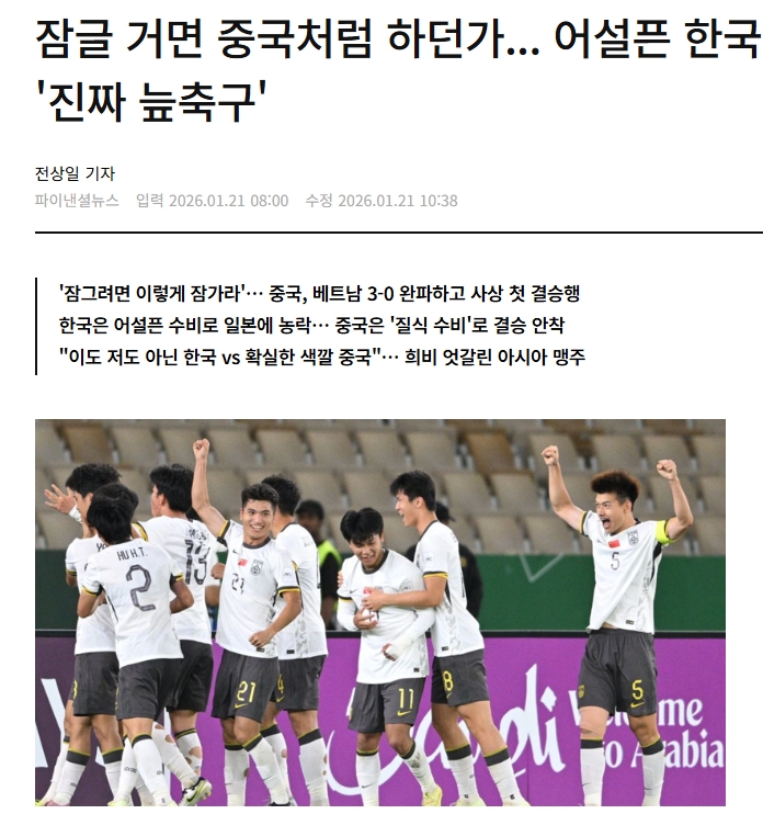 反观日本队,其晋级之路则充满了 “统治力” 的烙印。小组赛三战全胜,打入10球且一球未失。5-0胜叙利亚后、3-0胜阿联酋、2-0胜卡塔尔,没给对手任何机会。进入淘汰赛虽遭遇挑战,四分之一决赛与约旦战平后(1-1)凭借点球晋级(且是幸运之极的点球战),半决赛一球小胜韩国,不算大比分。但其整体展现出的控制力和攻击效率,依然是本届赛事的顶尖水平。